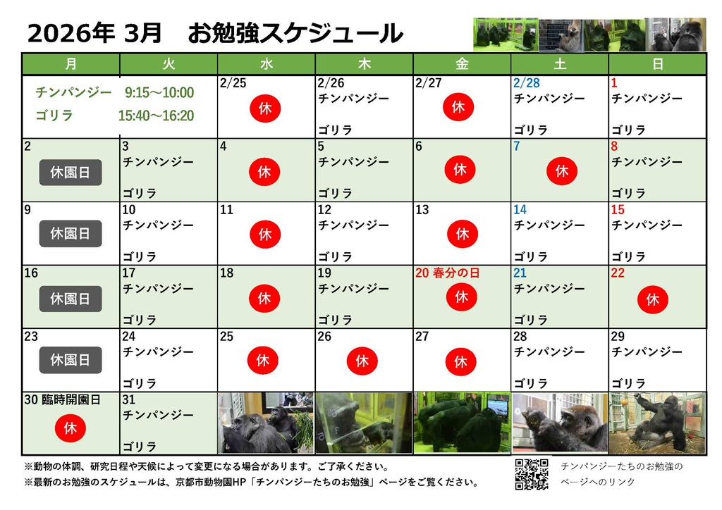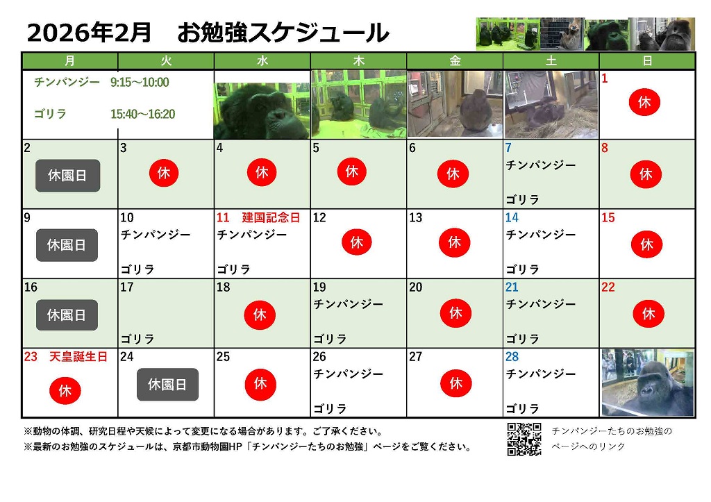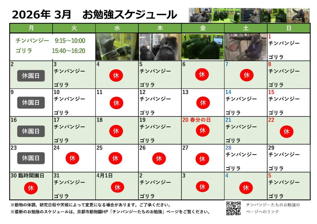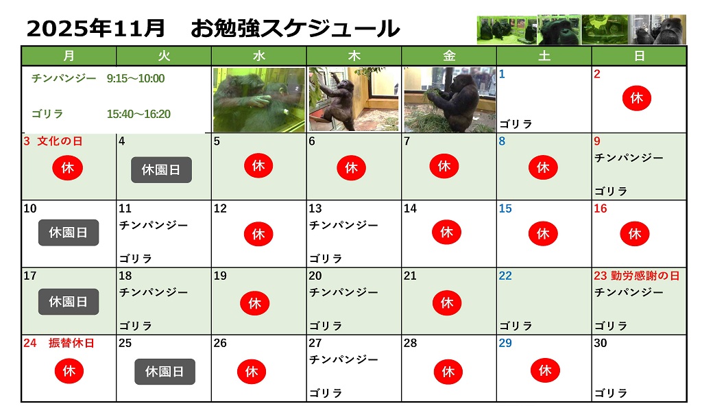 ※水曜日と金曜日は基本的にチンパンジーとゴリラのお勉強はお休みです。