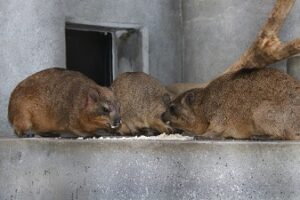 手前でサイ,奥でシオリとニッパが食べています。