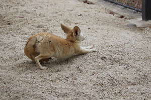 11月に来園したフェネックのテレ吉くんは、寒い寒い京都の冬を初めて体験しています…。