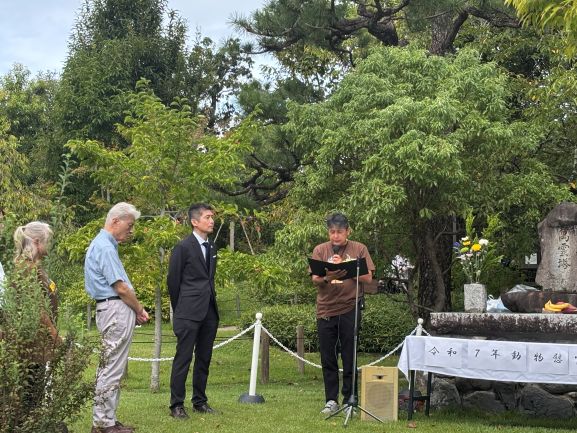 動物慰霊祭です。京都市動物園、和田園長の挨拶です。1年間に亡くなった動物たちの御霊に対してご参列の方々、職員一同で黙祷を捧げました。
