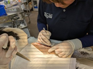 先日、ツル舎に復帰しました。 治療で頻繁に捕まえていたせいもあり、 マイナ(右)と見比べると、羽根がバサバサになっています…。 まだ、完全復帰というわけではないので、 引き続き、経過を観察していきます。 ちなみに、マイナから嬉しそうな雰囲気を 担当者は感じています。
