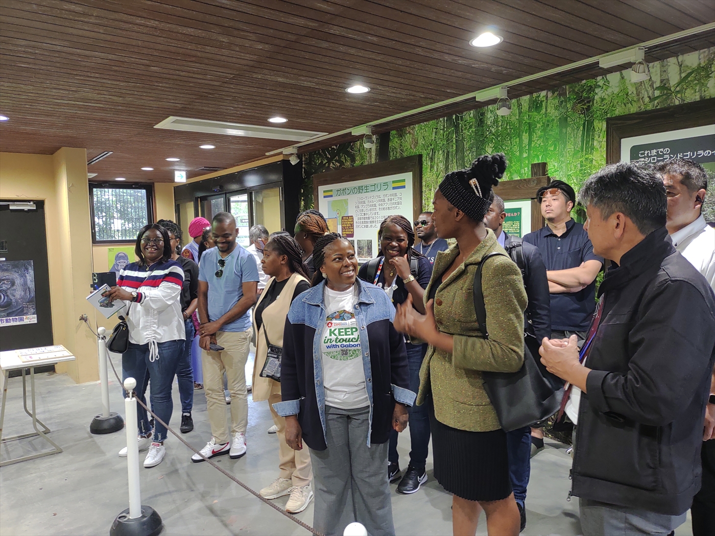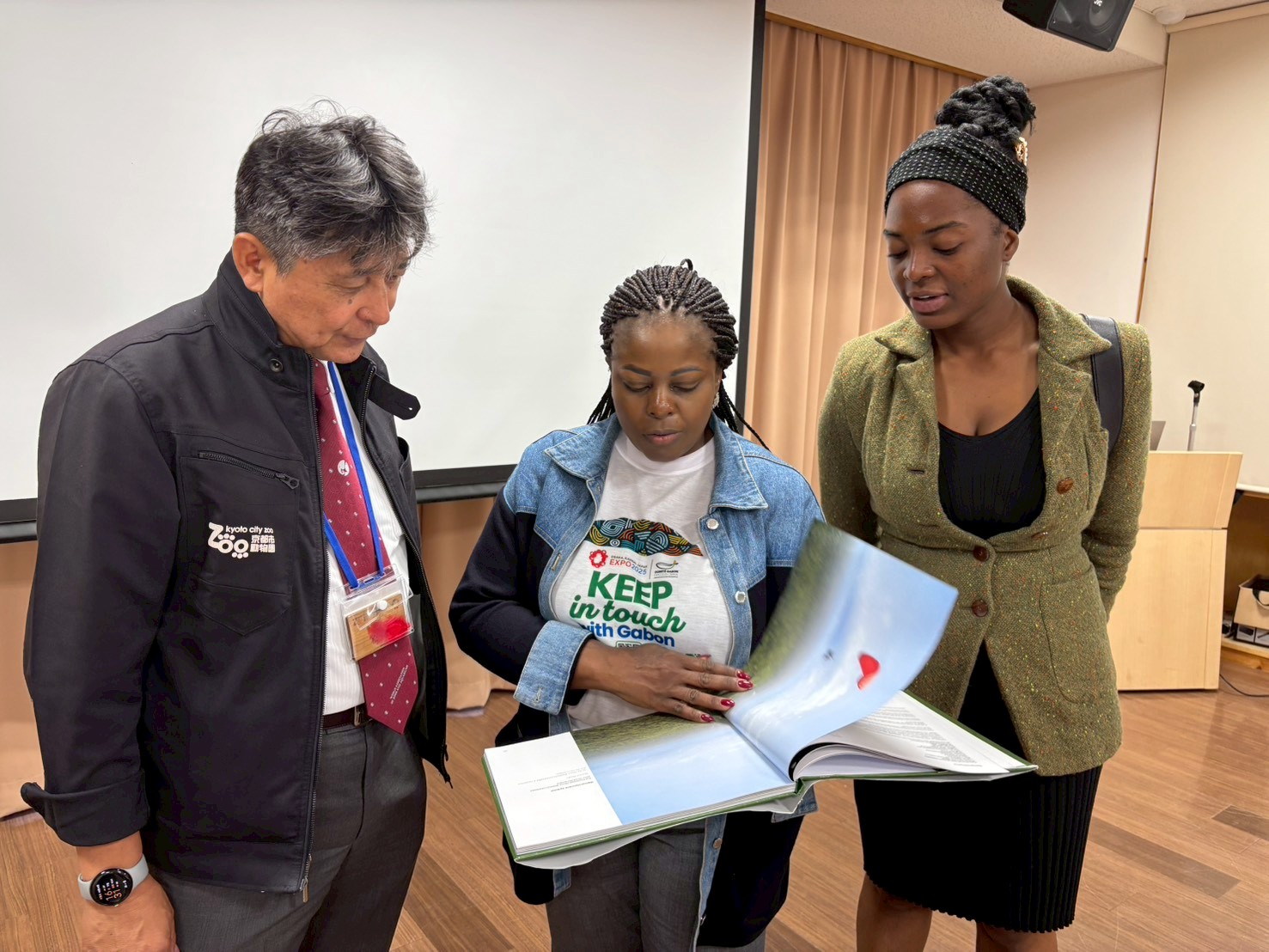 大阪・関西万博が閉幕した翌日、2025年10月14日(火)にガボン陳列区域政府代表 ニーナ・アブナ氏をはじめ、総勢14名の関係者がご来園くださいました。 お互いの状況や今後の連携の可能性について話し合い、課題や目標を共有しました。 その中で、ガボンにも動物園ができたとのことで、飼育管理や調査研究、環境教育の面でもサポートしてもらえたら嬉しいとのお話がありました。 実際、園内を視察された際に、自国に生息している野生動物を見たことが無い人が多いことから、本園の地域の野生動物を飼育展示する「京都の森」のコンセプトに興味を持たれていました。 ゾウの森(※ガボン共和国にはマルミミゾウが生息) ゴリラのおうち 京都の森・ツキノワグマ まずは、出来ることから始めようと思い、 ご来園された際にいただいたパネルやグッズを活用して、図書館カフェ2Fで「ガボン展」を開催中です。 その中のガボンの自然を撮影した写真集は、どれも素晴らしい作品です。また、エコツアーの紹介パンフレットも展示してありますので、ご興味のある方はチェックしてみてください。 ガボンとは万博でのキャッチコピー「Keep in touch」のとおり、互いに連絡を取りあいましょうと確認し、情報交換を続けていく予定です。 2025.10.3 世界ゴリラの日 at 大阪・関西万博 ガボン館2014.6.6 ガボン写真展&講演会 報告2014.5.26 ガボン写真展開催!2010.9.13 From Gabon 2010.7.29 ガボンでゴリラに会ってきました! part.42010.7.9 ガボンでゴリラに会ってきました! part.32010.6.19 ガボンでゴリラに会ってきました!part.22010.6.7 ガボンでゴリラに会ってきました! part.12010.4.23 いざ!ガボン共和国へ!!園長 和田