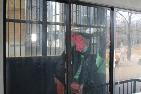 | 動物舎の窓拭き キリン舎の内側も拭いていただきました。 細かい砂埃を拭いていただき 見やすくなりました。 | ![]() |