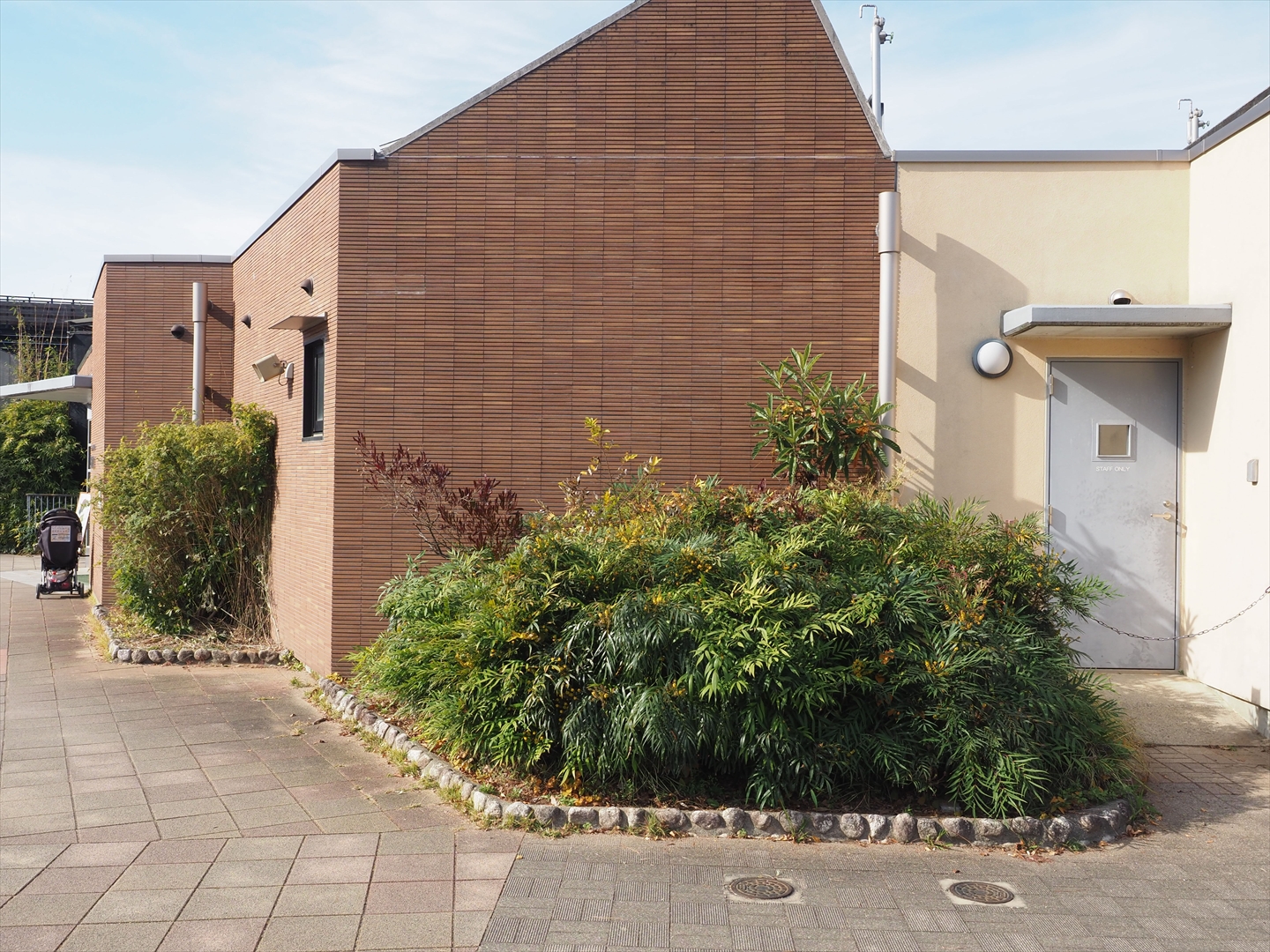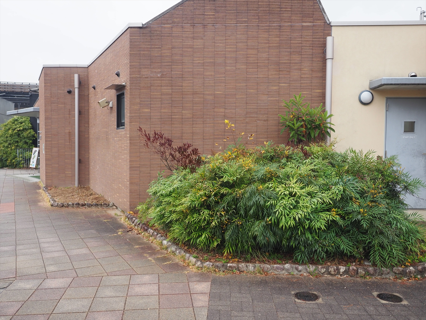 熱帯動物館の入口東側にある植栽帯にはヤダケ、ニューサイラン、カポック、ドラセナが植えられていましたが、