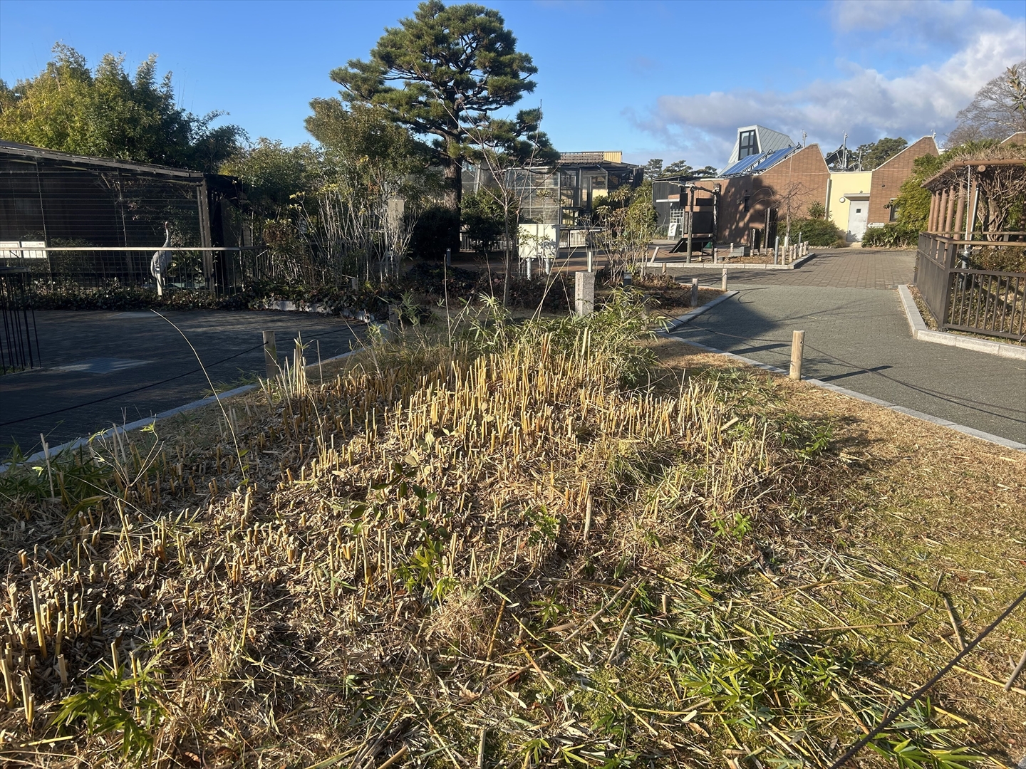 また、同じ緑地帯の東寄りにある竹も伐採を進めており、餌として活用中です。