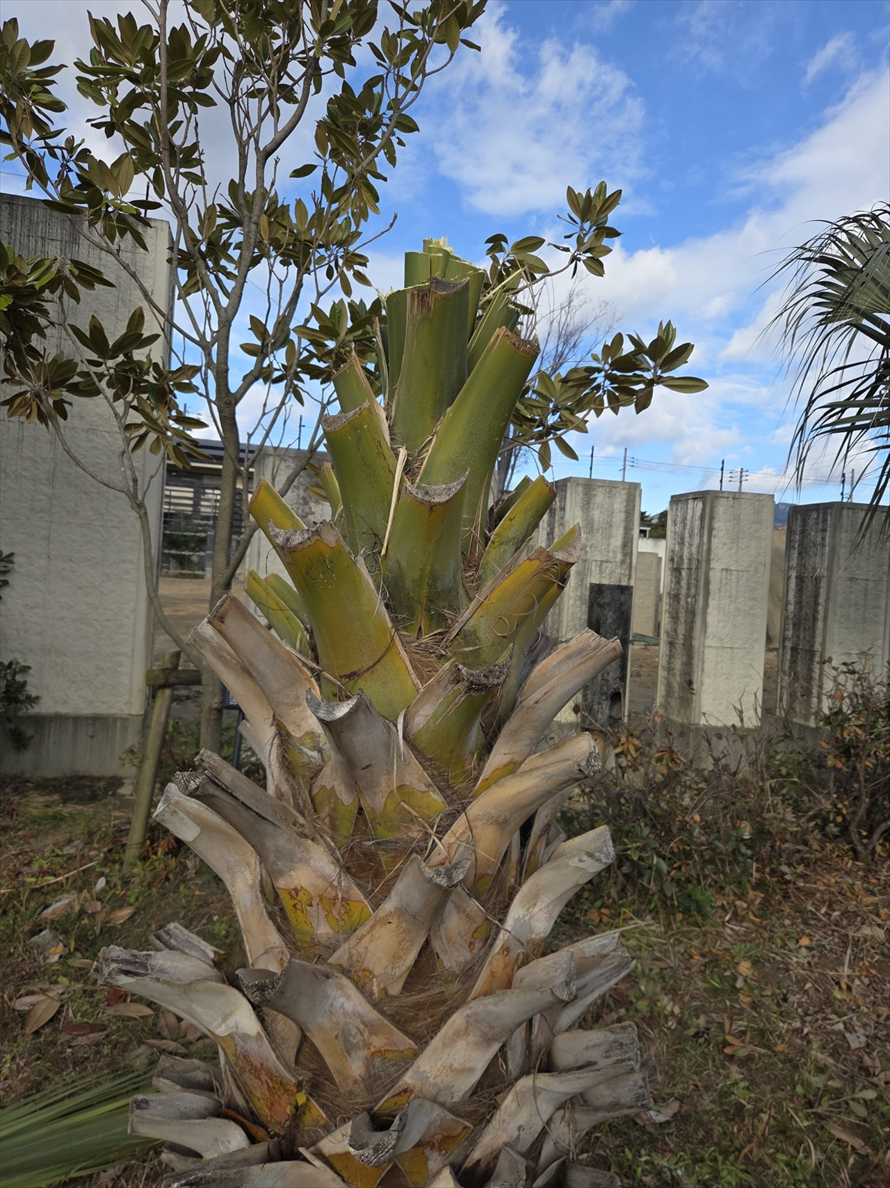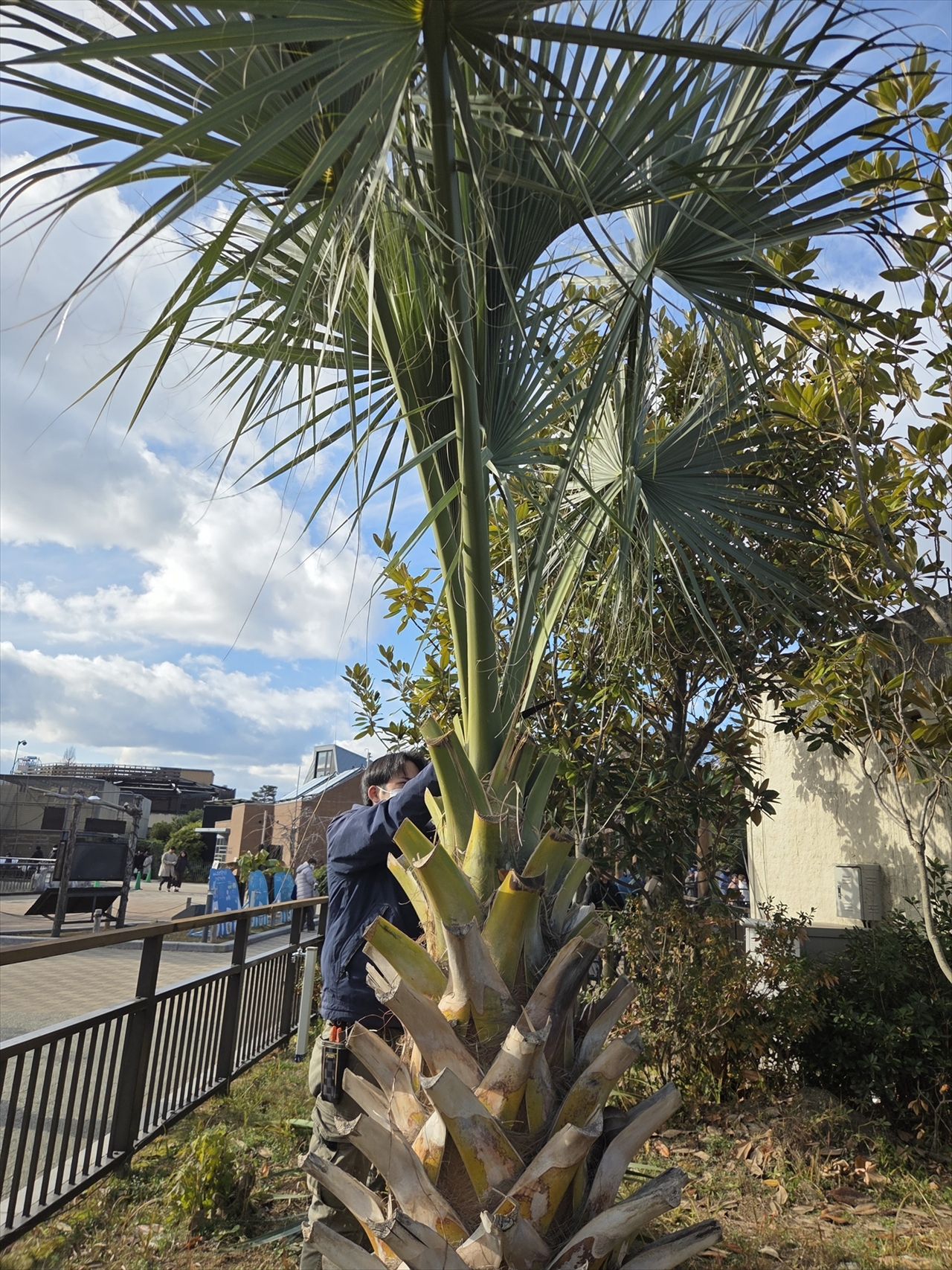 オスグラウンドの人止め柵内のヤシも、伐採予定のため、葉を餌として活用しました。