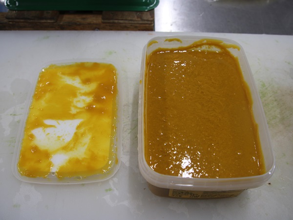 マンゴーピューレが思った以上にサラサラとした液体なので、