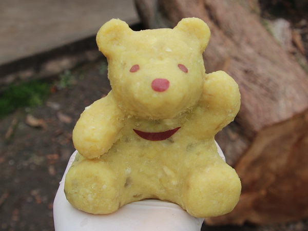 そして蒸しイモクマからガブリ。