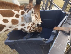 当園では、キリンの寒さ対策にお湯を与えてみる飼育研究を行っていました。