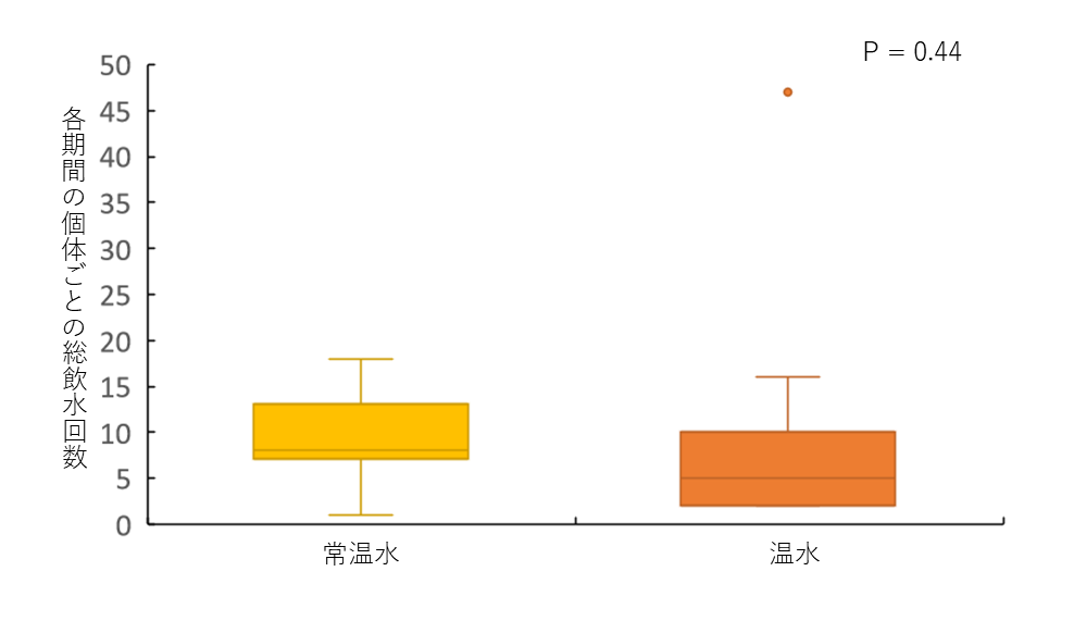 そこから20分間、水(もしくはお湯)を飲む回数を比較しました(8日間ずつ)。