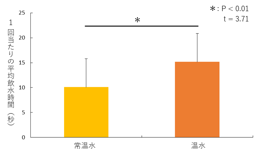 温水を好んで飲み、飲水量が水に比べて、増える可能性がわかりました!