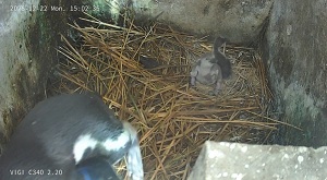 2卵そのまま無事に孵化し、育つのか、という点だけが不安だったのですが、 17日に1卵、遅れて19日に1卵無事に孵化し、カメラ越しに給餌も確認できました。
