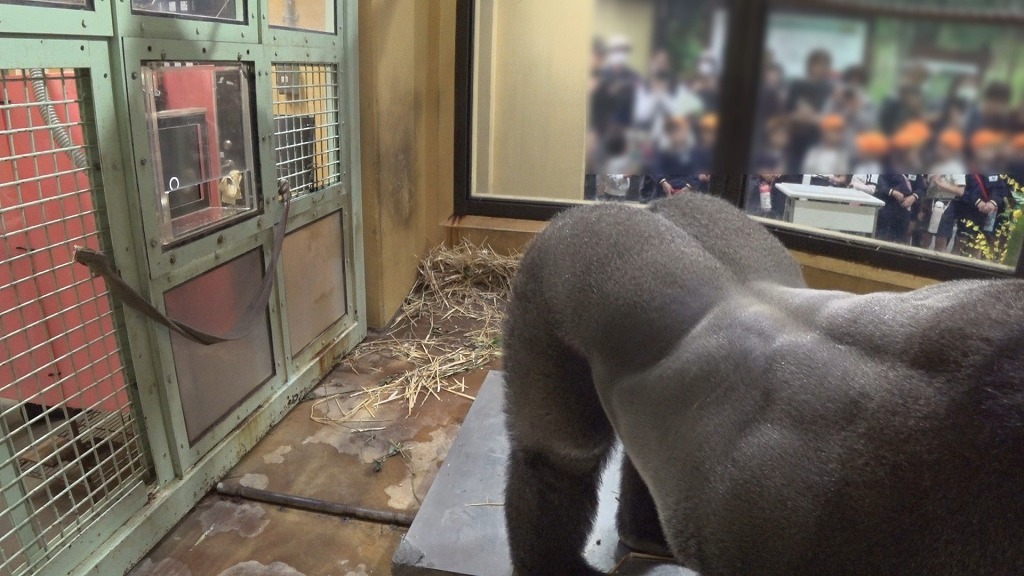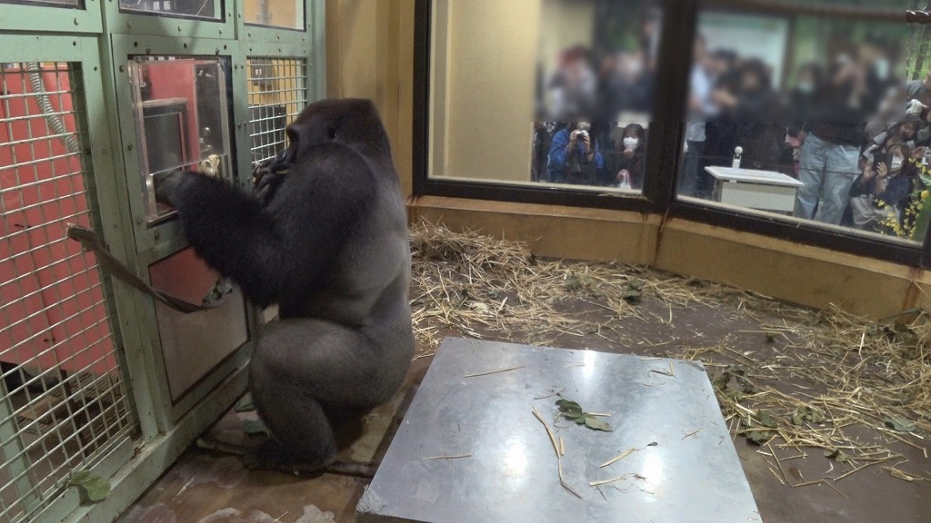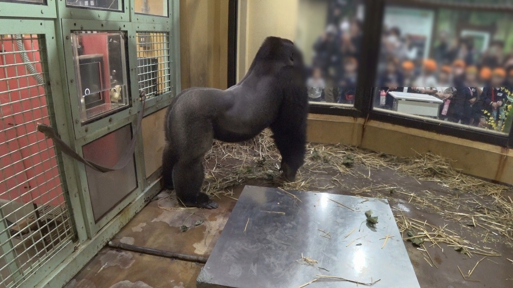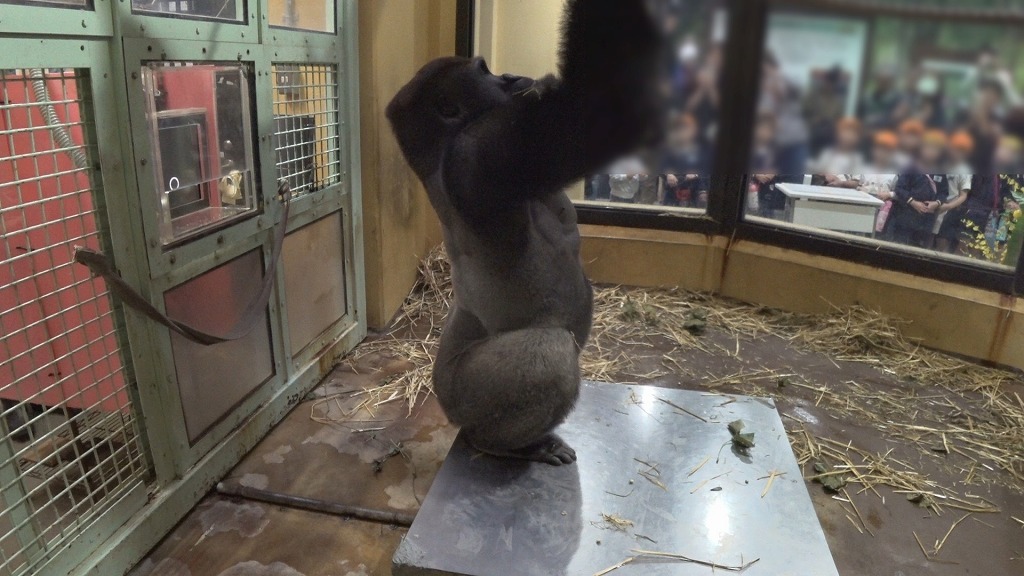 この日も、ゴリラ舎にはたくさんのお客さんがゴリラたちに会うために来てくれました。