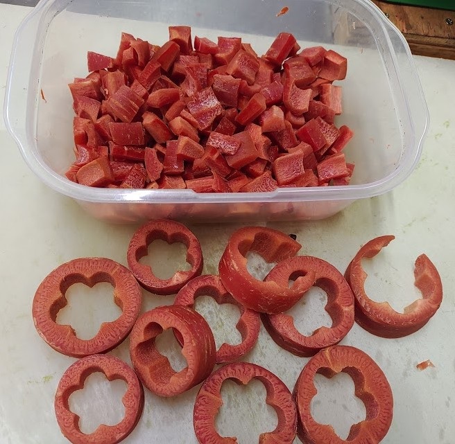 錦市場の八百屋さん、川政さんから、型抜き後の金時人参をたくさんいただきました。