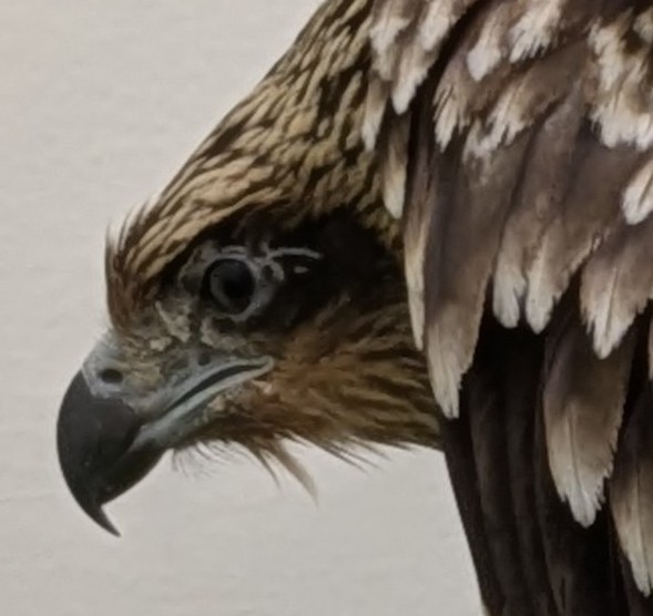 トビは救護センターによく搬送されてきますので、様々な個体をみてきましたが、こんな表情をした個体は初めてでした。余程驚かせてしまったのかもしれません。ごめんね、けれど状態を把握するだけの最低限は観察させてね…という思いで毎日を過ごしました。
