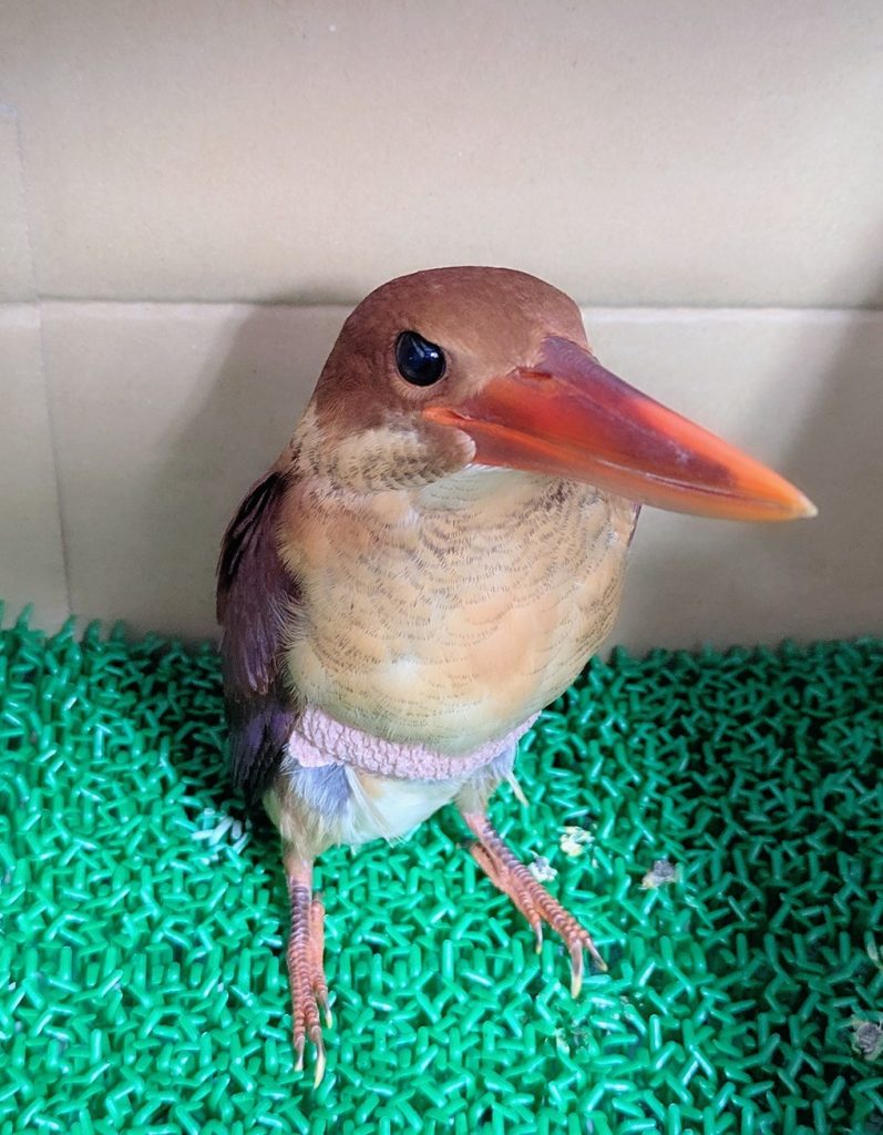本日は夏の風物詩です。夏といえば何を思い浮かべるでしょうか?祇園祭、猛暑、冷たい食べ物、花火…救護センターではこの鳥、アカショウビンです。昨年も1例搬送がありました。アカショウビン(学名Halcyon coromanda 英名Ruddy kingfisher)はキョロロロロ…となんとも不思議な美しい声で囀り、声は聞こえど姿はなかなか見えぬ、鳥好きにとっては憧れの鳥の一種です。本州では春に飛来し、夏の間子育てをし、秋になる前~秋の始まり頃になると東南アジアやフィリピン、インドネシア等で越冬します。
