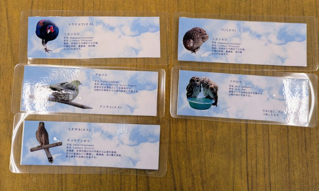 そして今回はサプライズお土産付き!ブックマーカーを作成しました。紹介した鳥のプロフィールと羽を添えたブックマーカーです。それぞれの羽が体のどの位置にあるのかなー等思いを馳せて頂きながら使用していただけたら幸いです。