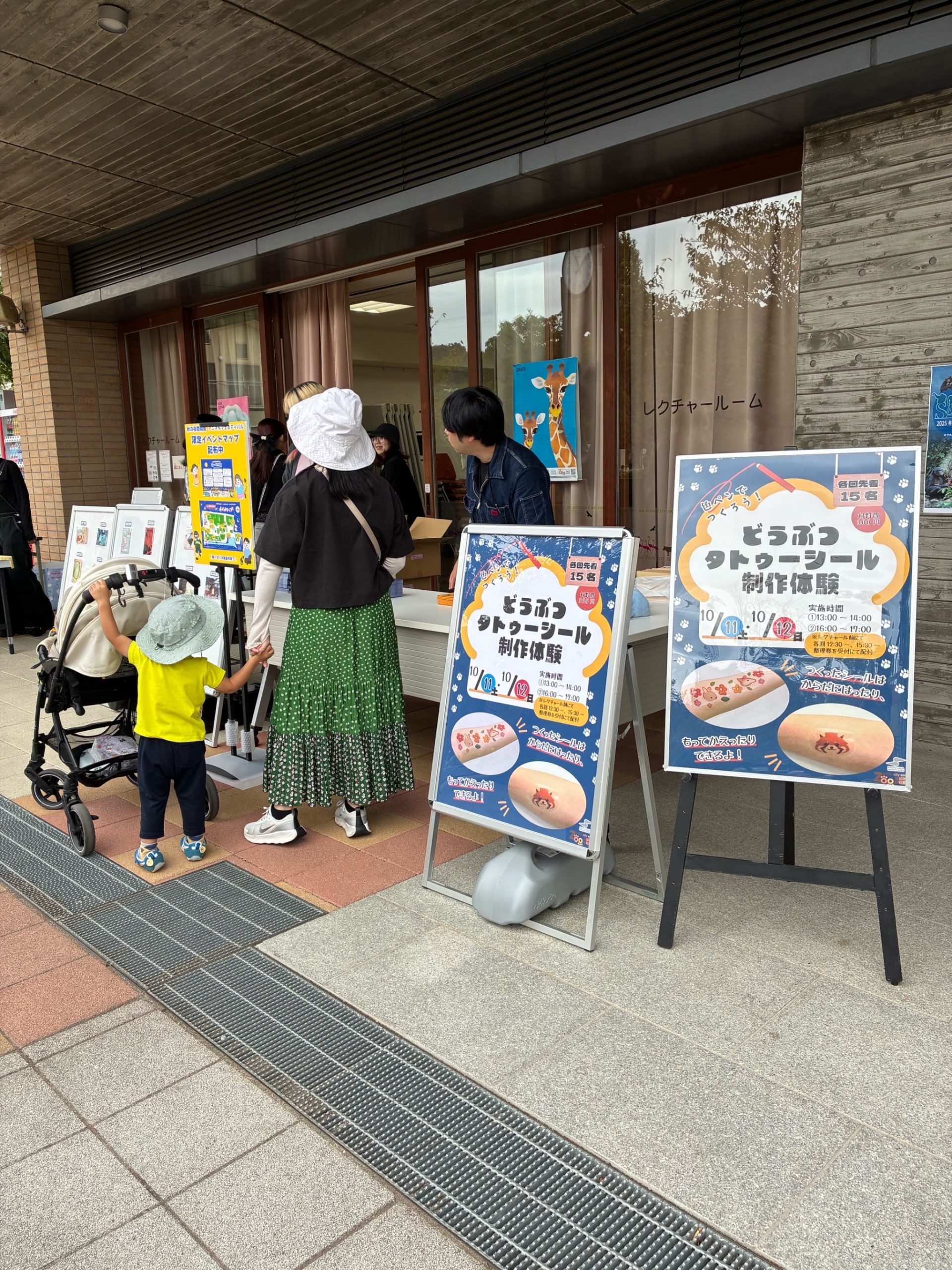 日中には、ゴリラのお面を当ててフレームの中で写真を撮れるイベントや、キリンとレッサーパンダのしっぽをつけて動物と写真撮影ができるイベントを実施していただきました。