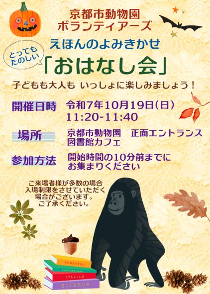 2025年10月19日(日)京都市動物園ボランティアーズによる絵本の読み聞かせイベント~絵本のおはなし会~