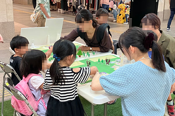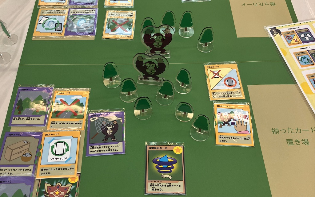 子供たちにカードで遊びながらSDGsを学んでもらうために考案したオリジナルのカードゲームです。テーマは「ゴリラの森を守ろう」。リサイクル等、問題解決の方法や、野生動物との共生について遊びながら学ぶことができます。