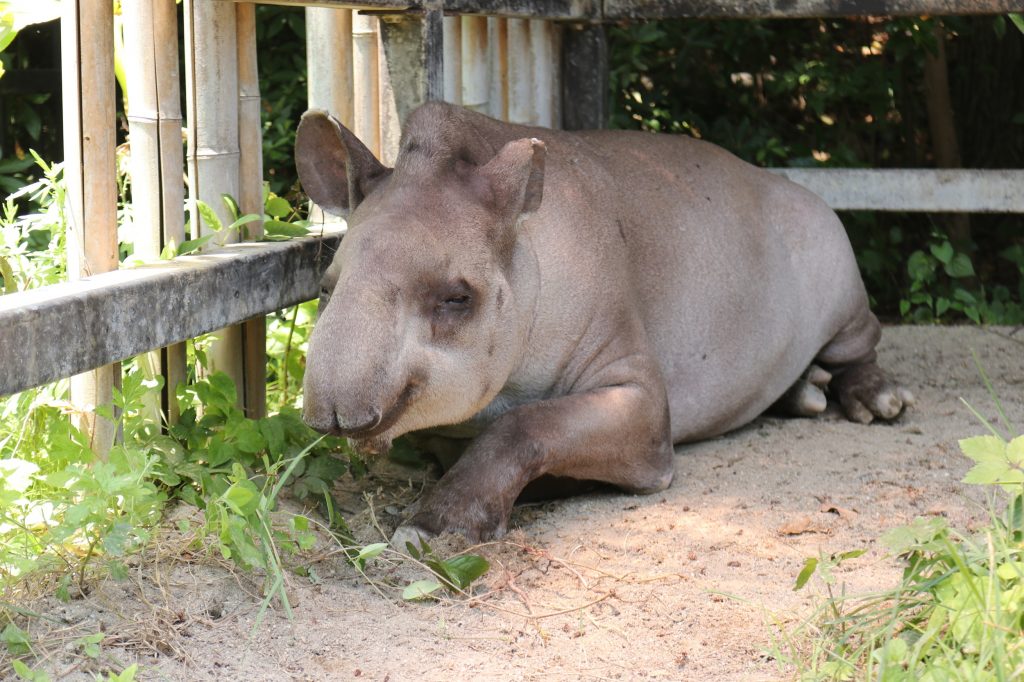 収穫したクローバー等を食べるバクをご覧いただきながら、担当者がバクについてのガイドをします。