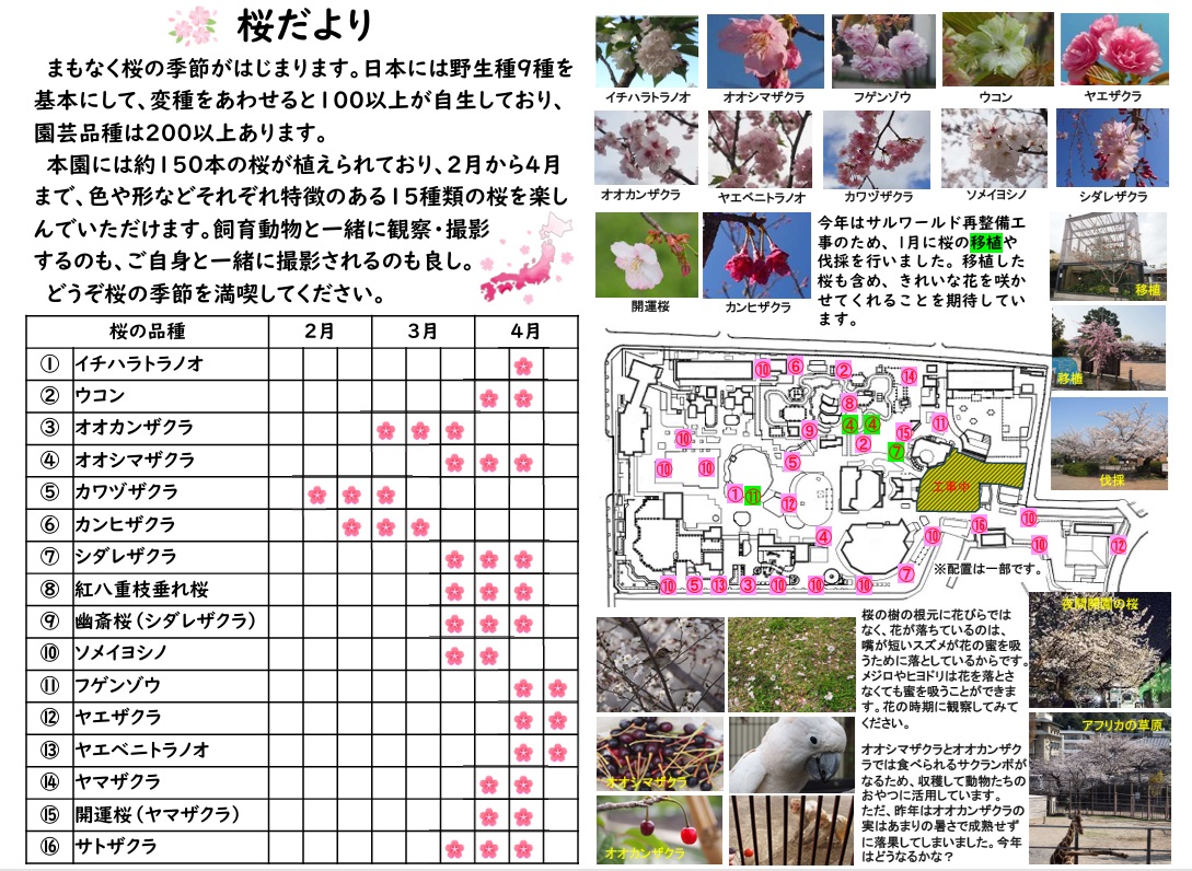 2月 桜だより 種・品種として15種類の桜がご覧になれます。