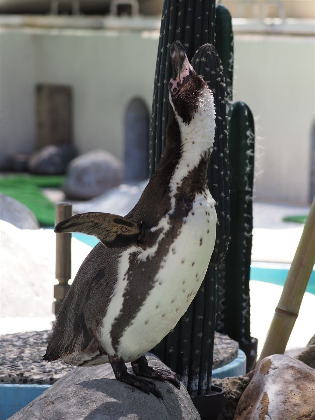 Q764 げんたろうはどうしてちがうところにいったんですか。Q765 ペンギンはどうやってないているんですか?声帯はありますか?Q766 トラもジャガーもいなくなり、代わりの動物もいなくてびっくりしました。少しづつ縮小して店じまいを考えておられるのでしょうか?Q767 雨の中も動物たちを出していましたが、雨にあたってもだいじょうぶかんですか。Q768 これから冬に向けて寒くなると展示しなかったり、隠れて見にくくなりそうな動物はいますか?Q769 カバのツグミちゃんが大好きです♡ 最長でどの位水の中にもぐっていられますか?Q770 昔の爬虫類館は屋外にガラス張りの展示場が6つぐらいあった記憶があるのですが、何を飼育していたのですか?
