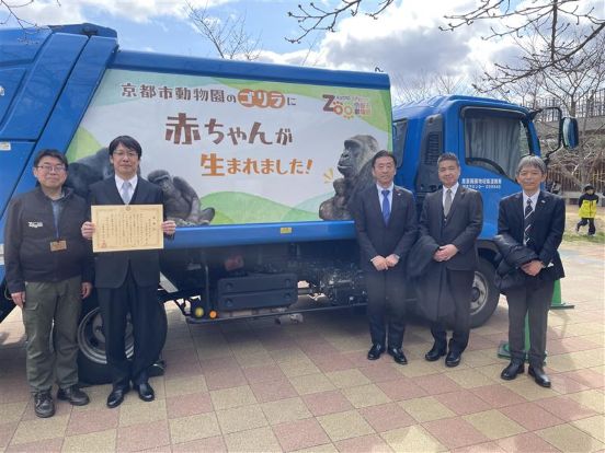お披露目されたラッピングカーには、当園で昨年11月に赤ちゃんが誕生したゴリラファミリーのデザインが施され、会場では多くの方々が車両を見学されていました。このラッピングカーは、市内各所を走行しながら動物園の魅力を広く届ける予定です。