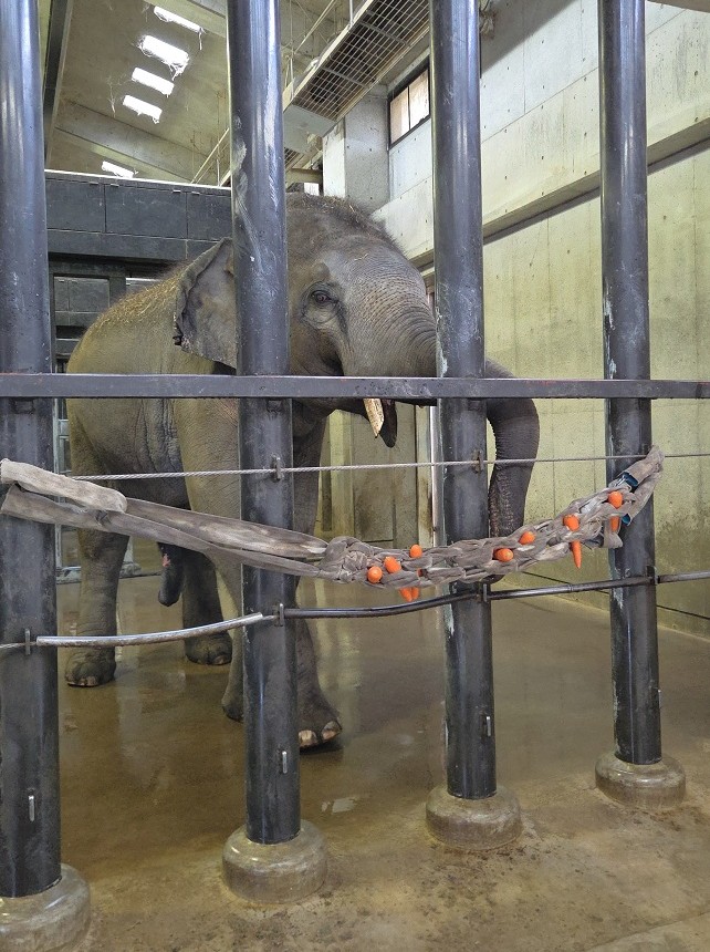 アジアゾウの秋都トンカムは牙治療のため屋内展示となっております。体調や天候によってはご覧いただけない場合がありますのでご了承ください。詳細や経過についてはSNSや飼育員ブログでお知らせいたします。